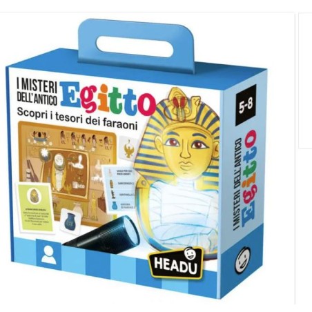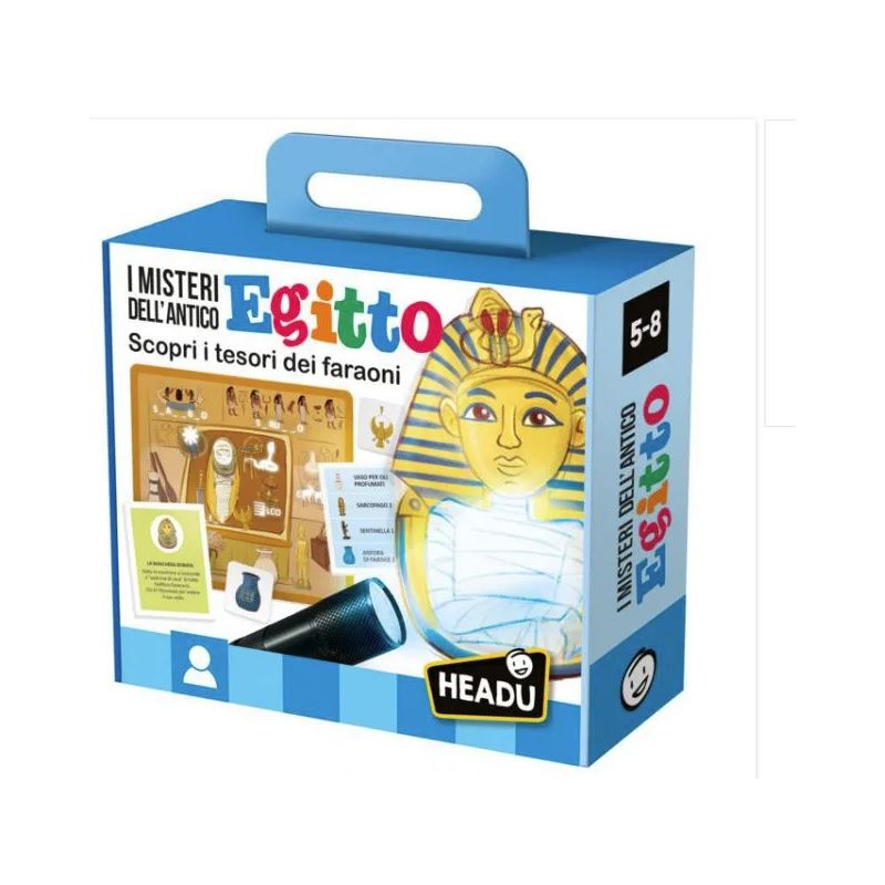 Età 6 10 Scopri i tesori dei faraoni Un fantastico viaggio alla scoperta dei tesori dei Faraoni Risolvi gli enigmi scopri la storia degli antichi egizi e arriva per primo alla Tomba di Tutankhamon Conoscere la civiltà dell Antico Egitto Classificare reperti Risolvere enigmi Rispettare le regole 4 plance tomba del faraone 80 tessere reperto 30 carte enigma 30 carte linea del tempo Torcia UV Made in Italy