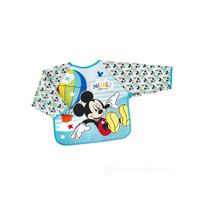 Bavaglino Grembiulino con maniche Mickey realizzato in peva Impermeabile trasparente e facile da pulire Misura 76 x 26 x 1 cm 76cm è la larghezza a maniche aperte