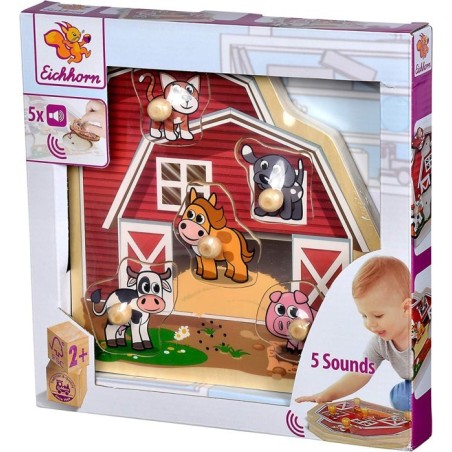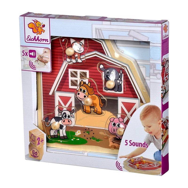 Eichhorn puzzle con suono Il puzzle in legno di Eichhorn Fattoria con i simpatici animali da fattoria cani gatti cavalli mucca e maiale è il giocattolo perfetto per tutti gli amanti degli animali