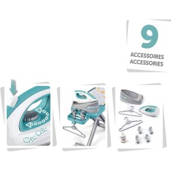 Sono inclusi tanti accessori per potenziare le funzioni di gioco 1 bottiglia 2 grucce e 4 mollette per poter stendere il bucato una volta stirato