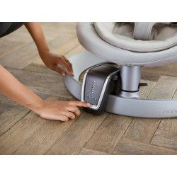 Nuna Wind System si aggancia alla base della sdraietta Leaf e in modo molto semplice grazie a una meccanica gommata che ruota contro la base attiva un movimento ondeggiante Una semplice interfaccia permette di scegliere una delle 6 velocità e 3 intensità differenti della luce notturna