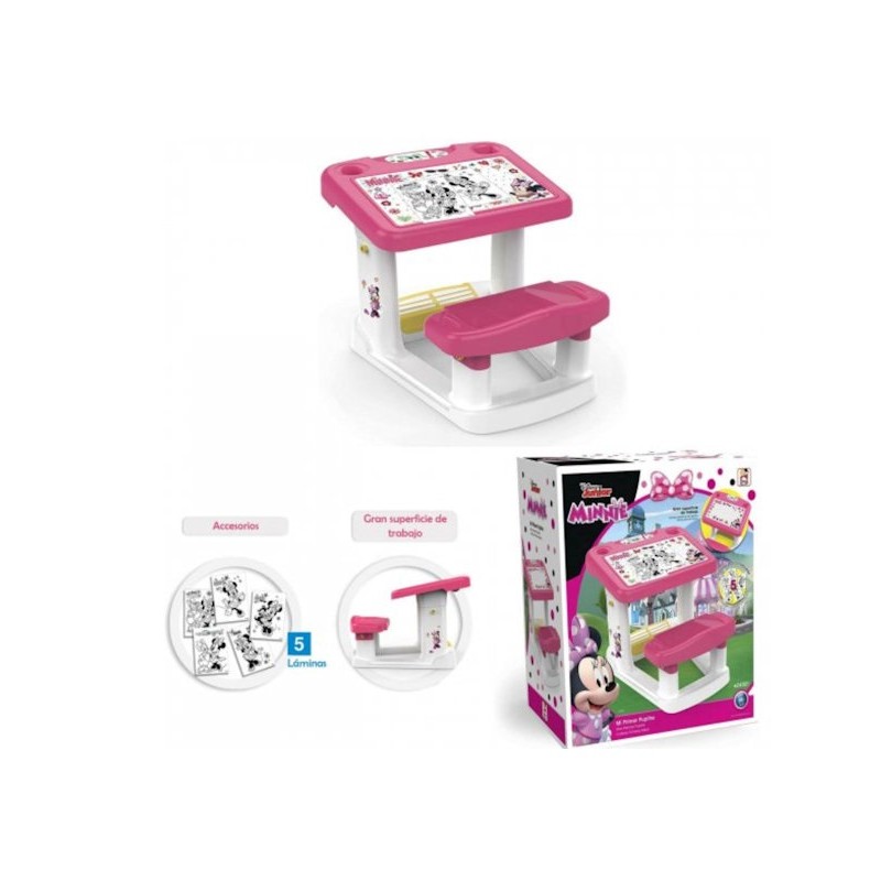Banchetto per bambini di Minnie per imparare creare e immaginare senza limiti Il banco scuola dispone di un ampia superficie di lavoro e di vani portaoggetti per riporre tutto il materiale da disegno e da scrittura Include disegni di Minnie da colorare Dimensioni del banco scuola Minnie 57 5 X 72 5 X 49 cm