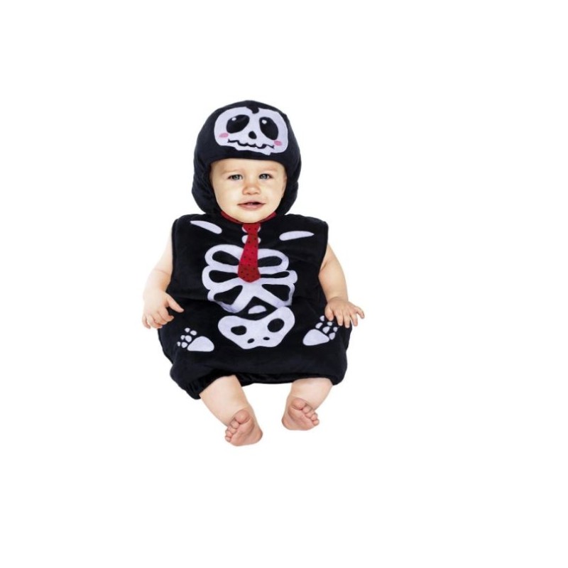 Costume saccotto da simpatico scheletrino con cuffia imbottito e foderato si indossa sopra ai normali vestiti Composizione Esterno Interno Fodera 100 Poliestere Lavabile a mano in acqua fred