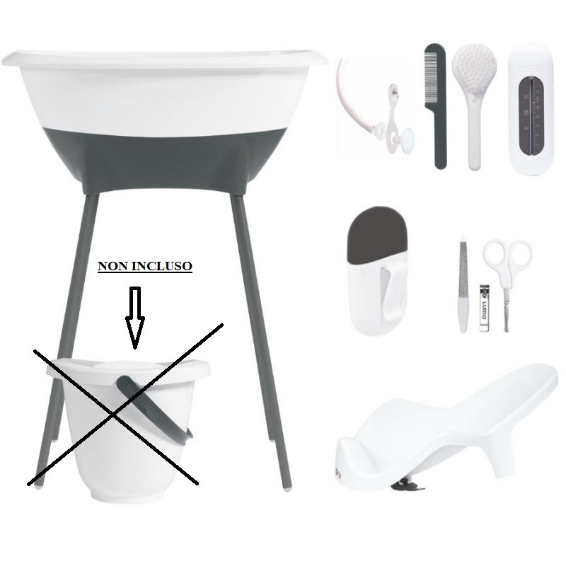 Luma Set da bagno Snow White composto da una vasca da bagno per neonati con tubo di scarico un supporto per vaschetta un riduttore per vasca da bagno Un elegante vaschetta per rendere perfetto il momento del bagnetto In un unica confezione troverete cinque prodotti essenziali per la cura del vostro neonato termometro da bagno pettine ecc La vaschetta ha un design innovativo per far stare comodo il bambino Dotata di un tubo di scarico per svuotarla Grazie alla forma ergonomica della sdraietta i neonati potranno fare il bagnetto in tutta comodità Facile da pulire