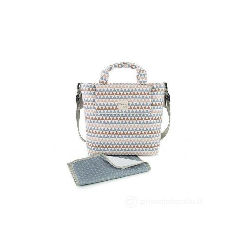 Borsa fasciatoio Oliver di Walking Mum by Pasito a Pasito con stampa geometrica, dotata di pratico fasciatoio pieghevole per bebè.