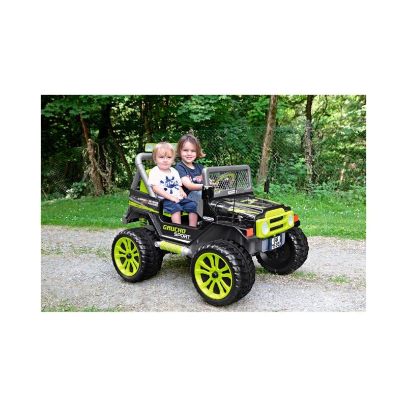 Gaucho Sport è il fuoristrada elettrico a due posti dedicato ai bimbi avventurosi dai 3 anni La sua batteria ricaricabile da 12V 12Ah 150Wh muove due motori da ben 250W ciascuno Il suo sterzo a cremNOTA L articolo richiede un supplemento per le spese di spedizione
