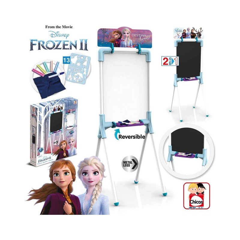 Include 10 gessetti colorati un pennarello cancellabile un panno per cancellare e uno stencil Frozen II