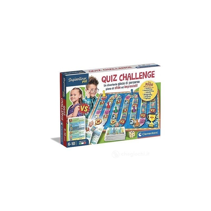 Sapientino dedica a chi aspira a muoversi nel mondo dei grandi una speciale collezione di giochi per esplorare nuovi interessi in modo divertente e coinvolgente Un gioco a quiz con oltre 3000 domande sulle materie della scuola primaria per mettersi alla prova e sfidare i compagni o la propria famiglia su tanti temi studiati in classe Italiano matematica storia scienze della terra e della natura geografia inglese una sfida avvincente che stimola curiosità e prontezza e supporta i bambini nel loro percorso scolastico attraverso il gioco CONTENUTO DEL GIOCO tabellone illustrato con icone tematiche carte domande e risposte ma anche carte sfida e imprevisto per rendere il meccanismo dinamico e sempre nuovo Questo gioco educativo può essere utilizzato come divertimento per tutta la famiglia un gioco da tavolo per sfidarsi sulle conoscenze di tematiche generali e sull inglese Per imparare divertendosi in compagnia di Sapientino Più questo gioco educativo è pensato per bambini dai 6 anni Made in Italy