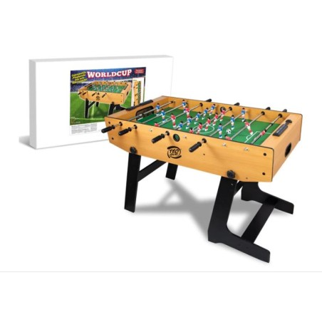 Calciobalilla Pieghevole in Legno con Aste Telescopiche Dimensione 158x45x85cm Il Calcetto è pieghevole questo garantisce un trasporto più efficace e veloce del gioco Si sviluppa fino ad un altezza di 85cm e di lunghezza misura 158cm La parte esterna del Calciobalilla è realizzata in legno tutti gli angoli sono realizzati con i bordi arrotondati per prevenire ogni tipo di rischio e pericolo durante il gioco Le Aste del gioco sono Telescopiche ciò significa che la parte terminale non esce dal profilo del Calcetto Questa tipologia di aste è adatta sopratutto in ambienti dove potrebbero essere presenti bambini che possono essere colpiti durante il gioco