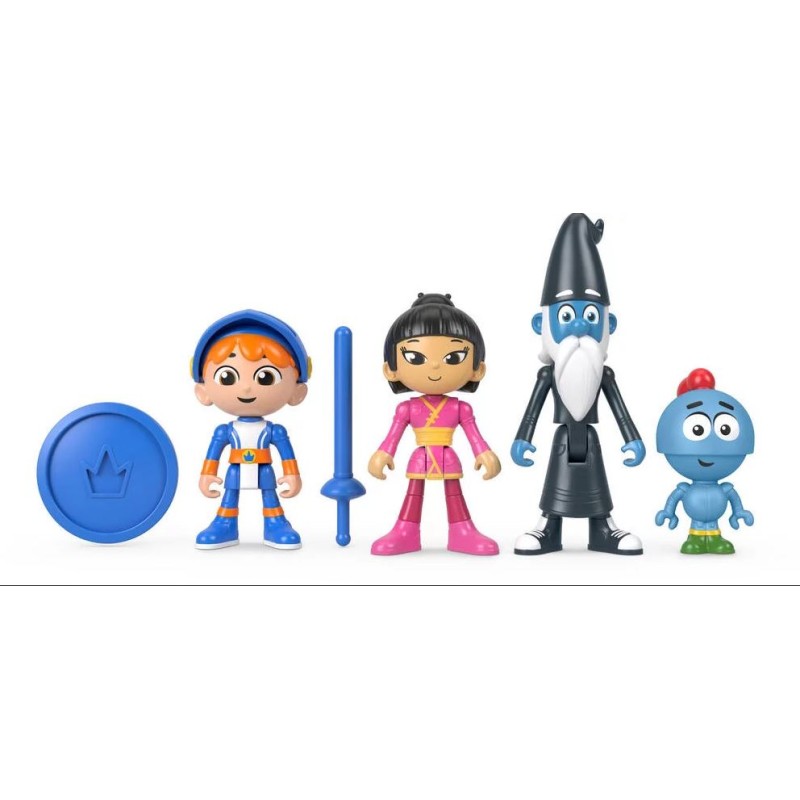 Pacchetto action figure in scala con personaggi chiave della serie Merlin Gus Clic Ti e Diane la statuina Merlin più grande misura 10 cm e Gus 7 cm