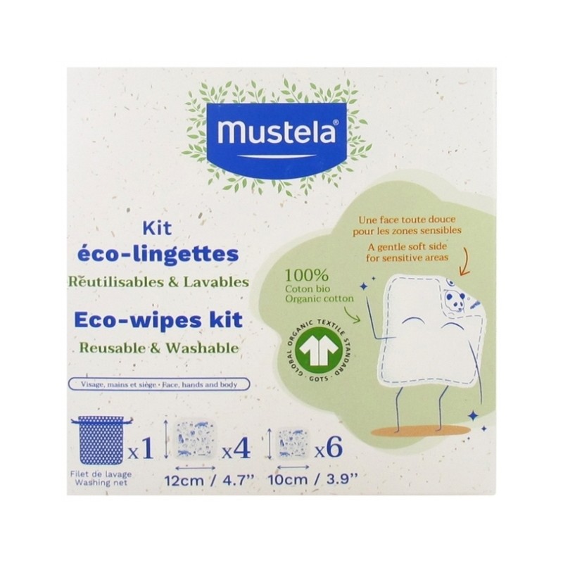 Mustela Kit Rete Lavante Eco Wipes 10 Salviette sono salviette riutilizzabili in cotone biologico per una routine di igiene ecologica ed economica Disponibili in 2 misure per la pulizia di diverse aree del corpo sono perfetti per essere utilizzati con acqua detergente o linimento