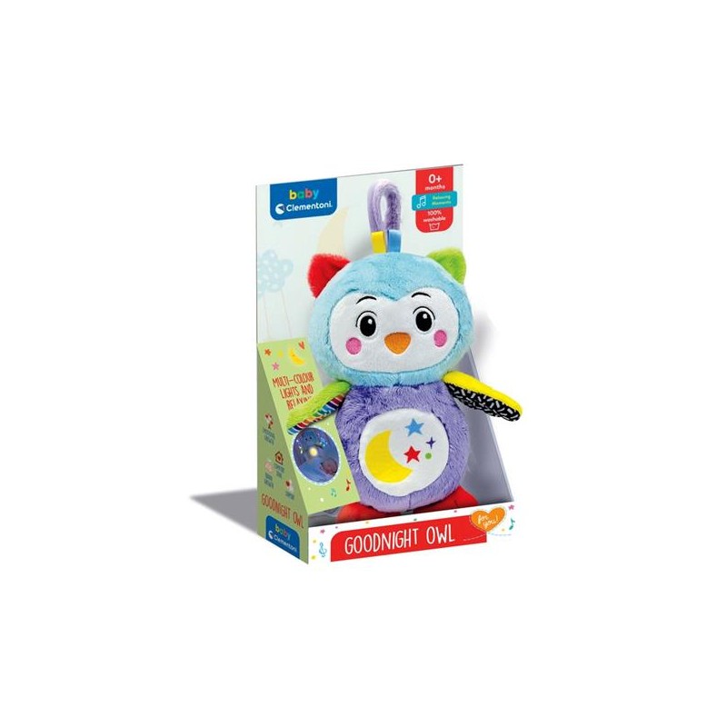 Il tenerissimo gufetto grazie al suo pancino luminoso regala al bambino una piacevole sensazione di sicurezza durante la notte E' pensato per aiutare i più piccoli ad affrontare le emozioni più difficili da gestire come la paura del buio e per donare un senso di tranquillità conforto e rilassamento Dolci melodie sono state studiate appositamente per portare benessere al bambino attraverso la musica per cullarlo e accompagnarlo gradualmente nel mondo dei sogni Grazie alla pratica fascetta in velcro può essere appeso alla culla ed essere trasportato ovunque