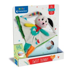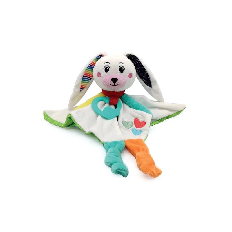 Il morbidissimo coniglietto comforter sarà il primo compagno di giochi del bambino e lo accompagnerà anche durante la nanna. Il comforter, realizzato in soffice tessuto anallergico, è caratterizzato dalla peculiarità di poter assorbire gli odori, rassicurando il bambino durante la fase di distacco. La mamma potrà "lasciare" il proprio odore sul peluche, che accompagnerà il bambino durante la giornata, diventando il suo compagno di nanna e di giochi preferito. Il ciondolo del comforter è un simpatico accessorio in silicone che può essere indossato dalla mamma e mordicchiato dal bambino quando viene tenuto in braccio. Il ciondolo può anche essere usato durante l'allattamento per stimolare la manualità del bambino.
