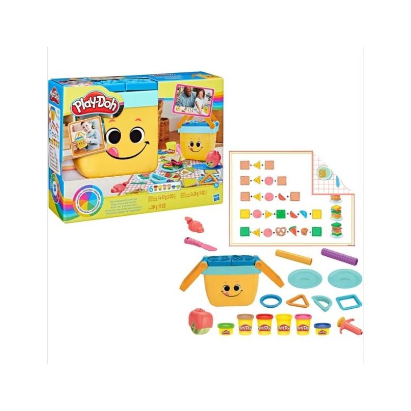 Che si tratti di pioggia o sole Korbi il cestino da picnic è sempre un set da picnic perfetto per i bambini Viene fornito con 12 strumenti per impastare i principianti 6 colori Play Doh e un cestino da picnic giocattolo per riporre gli strumenti per impastare Mentre i bambini si occupano di forme di base come quadrati cerchi e triangoli possono dare libero sfogo alla loro immaginazione e creare panini Play Doh impilando le forme Gli snack pazzi e gli insetti raffigurati sul lato della coperta da picnic invitano a immaginare storie di picnic e quando il tappetino viene girato i bambini possono impegnarsi in forme e sequenze Che si tratti del loro primo set Play Doh per principianti o di un regalo per bambini dai 3 anni in su qui i bambini possono scoprire la gioia dei giocattoli Play Doh Hasbro Play Doh e tutte le caratteristiche associate sono marchi di Hasbro
