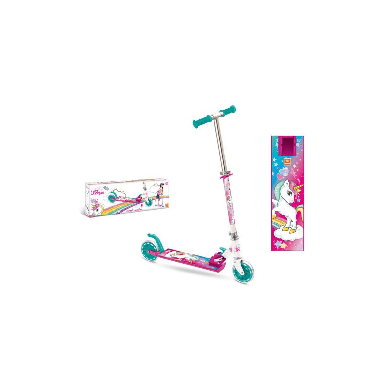 Il monopattino di Unicorn si ripiega facilmente e velocemente ideale per il trasporto e utile nel momento di riporlo in auto o a casa Il monopattino 2 ruote design unicorn presenta ruote in pvc da 120mm cuscinetti abec 5 e freno posteriore Il manubrio è regolabile in altezze differenti da 72 a 76 5 cm supporta un peso del bambino fino ad un massimo di 50 kg Le maniglie sono rigide ed hanno un ottimo grip per offrire una guida più sicura ai nostri bimbi