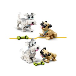 L azione canina non deve mai finire con 3 collezioni di cani da costruire in questo fantastico set di gioco LEGO Creator 3 in 1 I bambini possono costruire un beagle un barboncino e un labrador ricostruirli in uno schnauzer nano e un carlino o trasformarli in un husky e un bassotto a pelo lungo