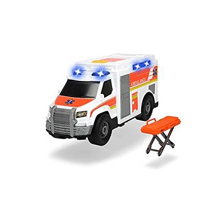 Ambulanza Lunghezza 30 cm Ruote libere con luci e suoni Portellone apribile con barella inclusa Batterie incluse 2 x 1 5v r6