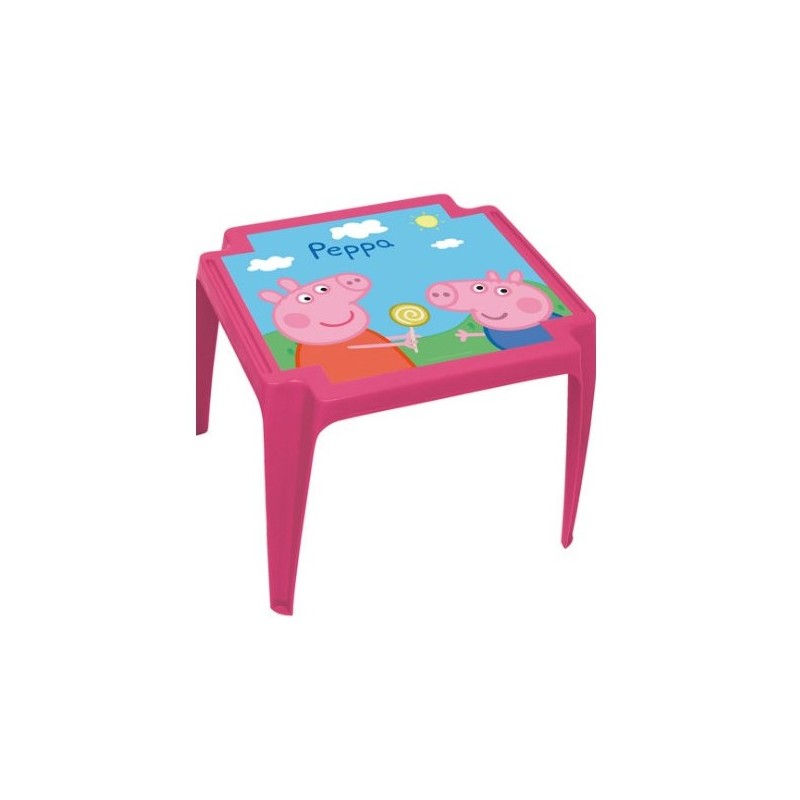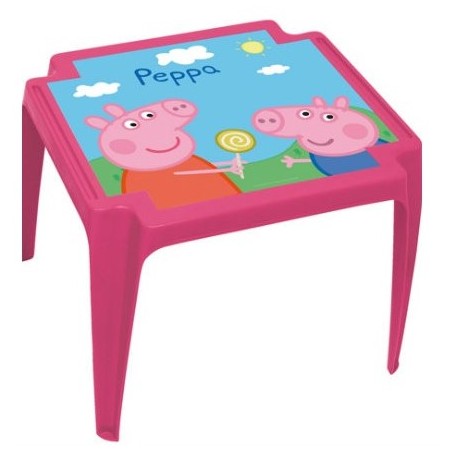 Simpaticissimo tavolino Peppa Pig per colorare la cameretta del tuo bambino Adatto sia per interni che per esterni Tavolo monoblocco di facile manutenzione Dimensioni del tavolo 50x55x44 cm Possibilità di armonizzarlo con la sedia monoblocco in plastica Peppa Pig