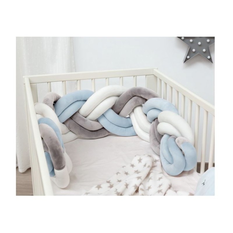 Questa protezione imbottita a forma di treccia è ideale per circondare la culla ed evitare così che il bambino urti la testa contro le pareti o le sbarre