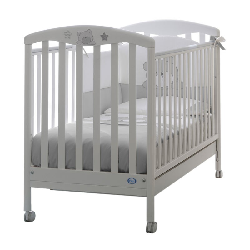 Pali Lettino Bambino Teo in Legno con Sponde Mobili di Pali è studiato per rispondere alle necessità del bambino Ha le sponde mobili e la rete a doghe in legno di faggio massello è dotato di Kit Prima Nanna con rete regolabile a due posizioni la posizione superiore permette un accesso più agevolato alla madre nei primi mesi di vita del bambino mentre quella inferiore è ideale per accogliere il bambino più grande