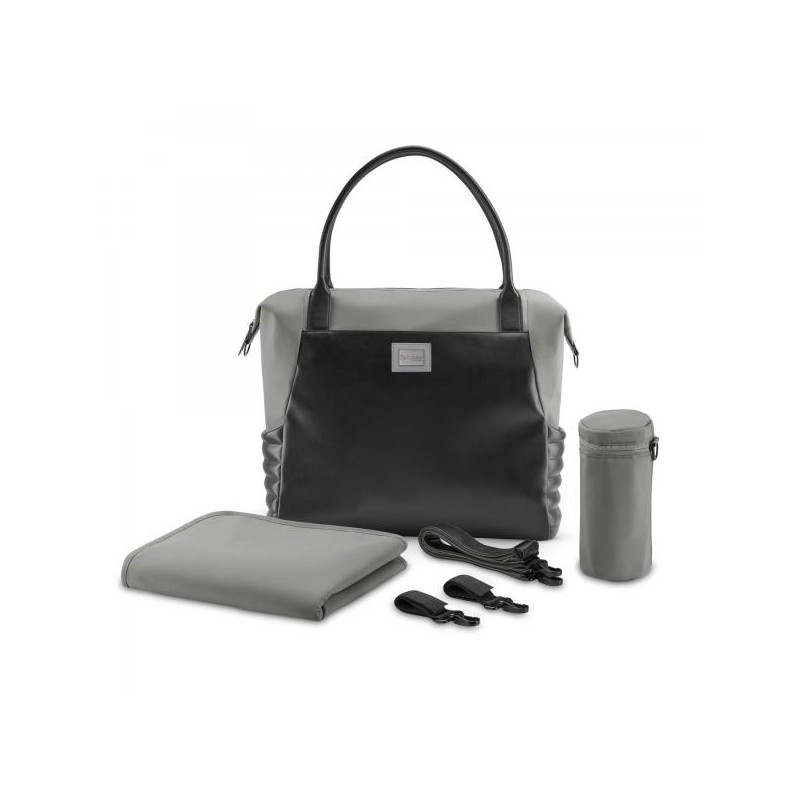 La borsa Shopper CYBEX Platinum è dotata di un porta bevande termico rimovibile un tappetino per il cambio e uno scomparto per indumenti bagnati