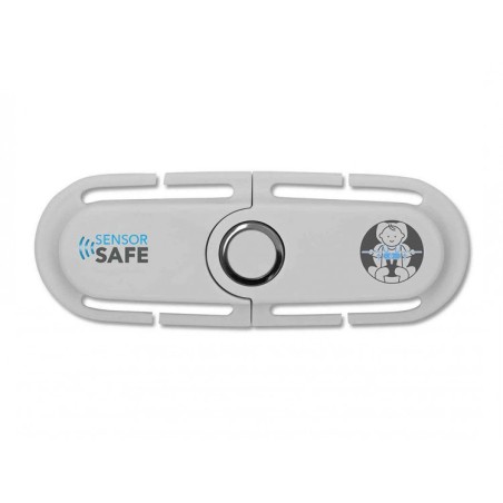 La clip SensorSafe collegata al sistema di cinturine che ti informa in ogni momento della sicurezza e della salute del tuo bambino seduto in auto
