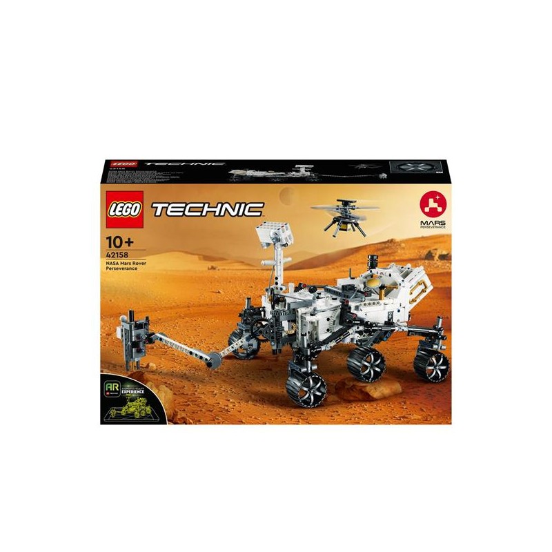 Questo progetto di costruzione LEGO Technic per lo spazio è perfetto per i giovani con la passione per la scienza e la tecnologia ed è accompagnato da un esperienza di realtà aumentata che permette di osservare l ambiente di Marte e la missione del rover Questo modellino giocattolo LEGO NASA è ricco di funzioni che aiutano i bambini a conoscere meglio le sfide che il rover Perseverance e l elicottero Ingenuity devono affrontare Il rover è dotato di sterzo a 360 e di un braccio mobile oltre che di sospensioni completamente articolate che consentono al veicolo di mantenere la trazione su tutte e 6 le ruote sulle superfici accidentate Questo set di ingegneria con i LEGO comprende altri dettagli costruibili come l unità di alimentazione le antenne le telecamere e gli strumenti scientifici