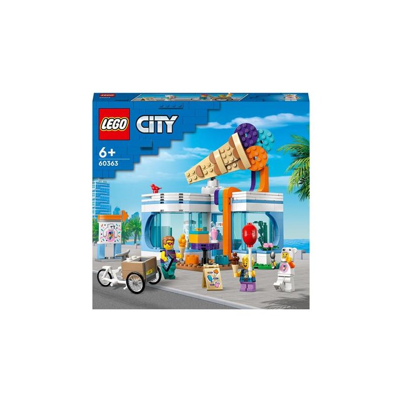 Porta un atmosfera estiva nei giochi dei bambini e delle bambine dai 6 anni in su con il set LEGO City Gelateria 60363 Gli appassionati di gelaterie e feste ameranno questo set di costruzioni per bambini un nuovo negozio LEGO ideale per ampliare la propria città di mattoncini