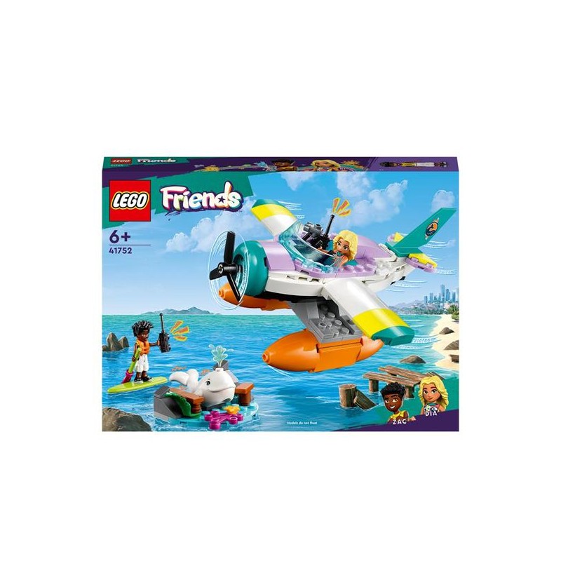 Questo set con aereoplano giocattolo da costruire comprende le 2 mini bamboline dei personaggi LEGO Friends di Zac e Dia una balena giocattolo da salvare e tanti accessori per il gioco di ruolo I bambini possono aiutare Zac e il suo mentore a salvare l animale giocattolo intrappolato sulla costa mentre si prendono cura dell habitat naturale degli animali marini L idrovolante di salvataggio costruibile ha 2 posti per le mini bamboline e una stiva di carico Insieme all aereo giocattolo la scena sulla spiaggia include accessori come un giubbotto di salvataggio una tavola da paddle una pagaia un walkie talkie un binocolo un biberon e una chiave inglese oltre a pezzi che possono essere spostati per liberare la balena beluga intrappolata Questo set può essere combinato con altri set LEGO Friends come il 41736 e il 41734 set venduti separatamente per vivere ancora più avventure di salvataggio sull oceano