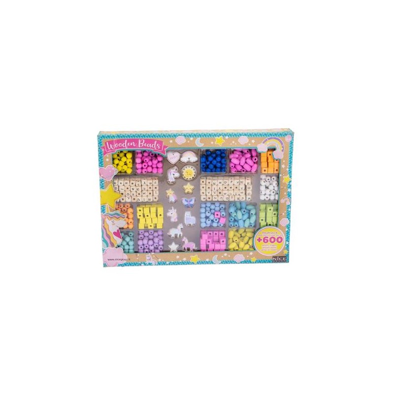 CONTENUTO ogni scatola contiene 600 perline in legno di cui 12 raffiguranti graziosi animali e oggetti e 2 matassine
