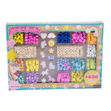 WOODEN BEADS BIG BOX è una confezione di perline di legno assortite per creare braccialetti e collane originali e creativi per bambini