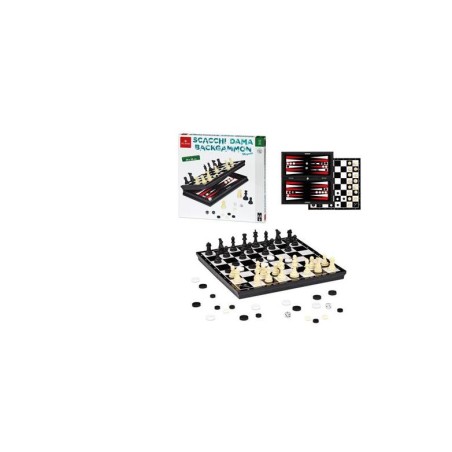 Un unico contenitore che racchiude tre dei più famosi giochi al mondo Scacchi Dama e Backgammon in versione magnetica Il piano del gioco è double face e pieghevoleQuesto set 3 in 1 non è adatto sol