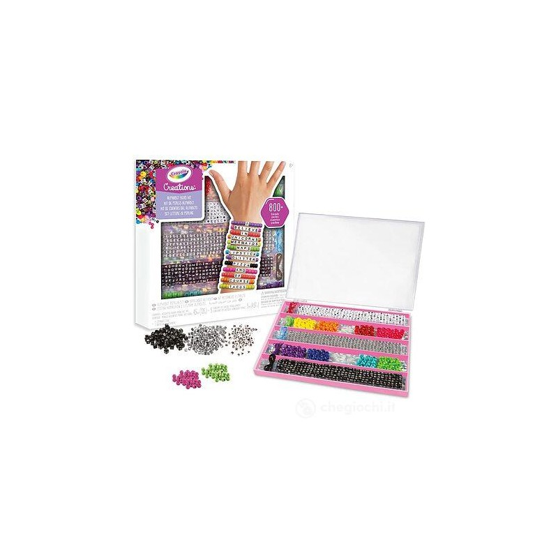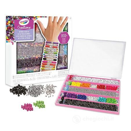 Ricco set di 800 Perline e accessori per creare fino a 50 braccialetti personalizzati e coloratissimi Include charms con le lettere dell alfabeto per realizzare personalissimi messaggi e scrivere il proprio nome Include una piccola valigetta richiudibile in plastica per conservare le perline senza perderle e averle sempre in ordine