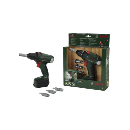 Riproduzione fedele dell avvitatore a batteria Bosch con funzioni a misura di bambino e con impugnatura adatto adatta alle mani dei bambini