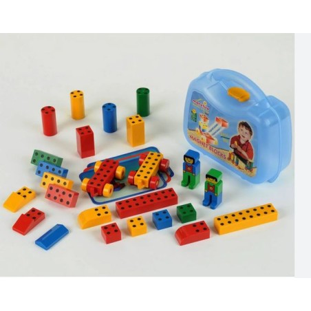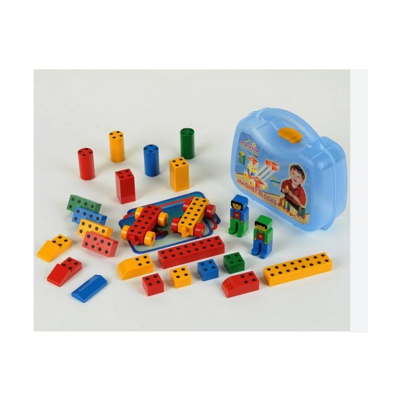 Il set per piccoli costruttori contiene 25 blocchi magnetici di forme diverse adatti per innumerevoli costruzioni fantasiose e creative