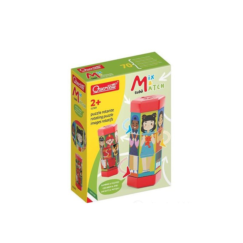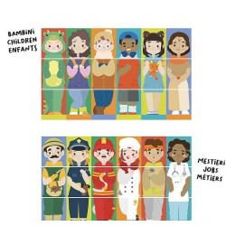Puzzle rotante o rompicapo Dipende solo dall immaginazione con cui il bambino componendo una combinazione di personaggi e professioni Un pompiere indossa un cappello da cuoco o no Combina le immagini di professioni reali e immagini di bambini e crea combinazioni inaspettate completamente nuove Adatto a bambini dai 2 anni