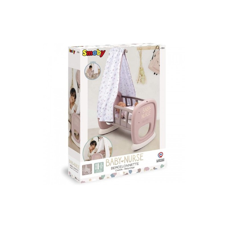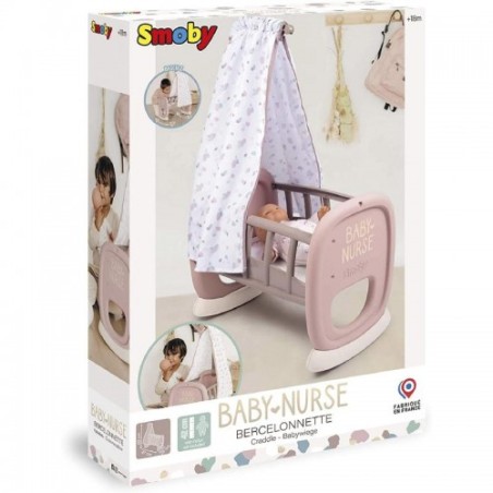 Smoby Baby Nurse Culla per bambole con baldacchino in plastica e tessuto rimovibileSi adatta a tutte le bambole fino a 42 cm Bambola non inclusaEtà consigliata per bambini dai 18 mesi in suDimensi