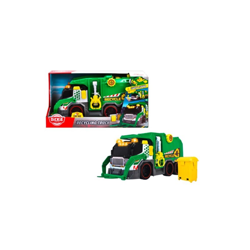 Questo fantastico camion della spazzatura giocattolo ha una vasta gamma di caratteristiche interessanti C è un braccio di presa luce e suono e una funzione di sollevamento motorizzata per il bidone