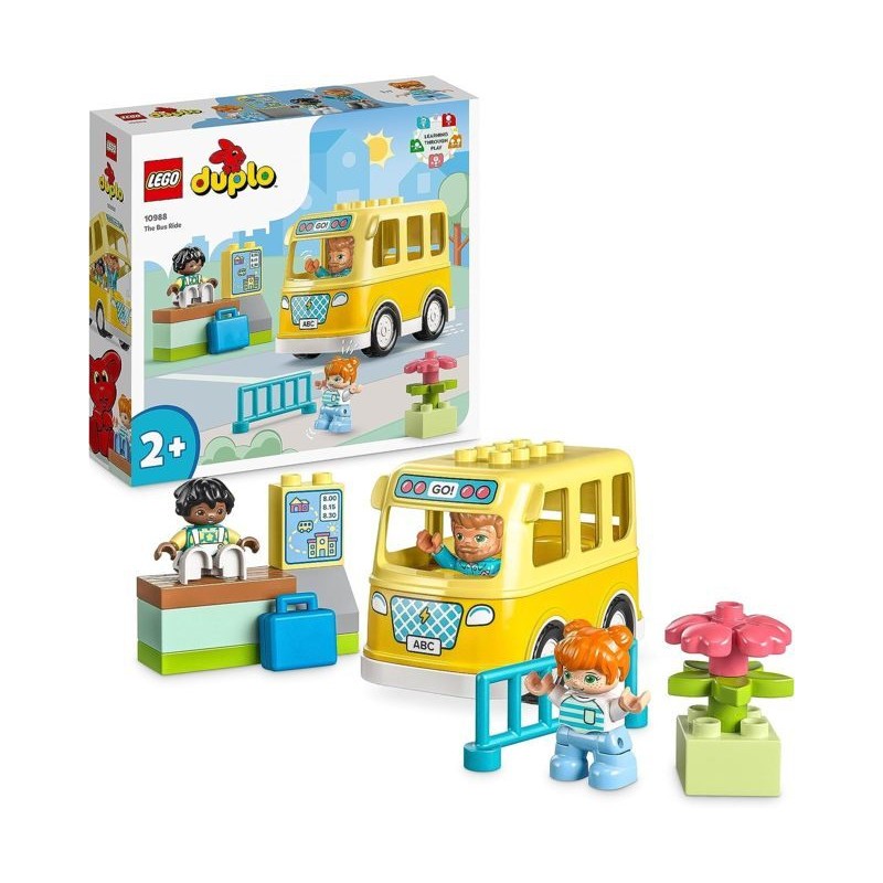 I bambini dai 2 anni in su vivono avventure quotidiane e sviluppano abilità motorie e sociali con il set di giochi educativi LEGO DUPLO Town Lo Scuolabus dotato di autobus giocattolo e 3 figure DUPLO