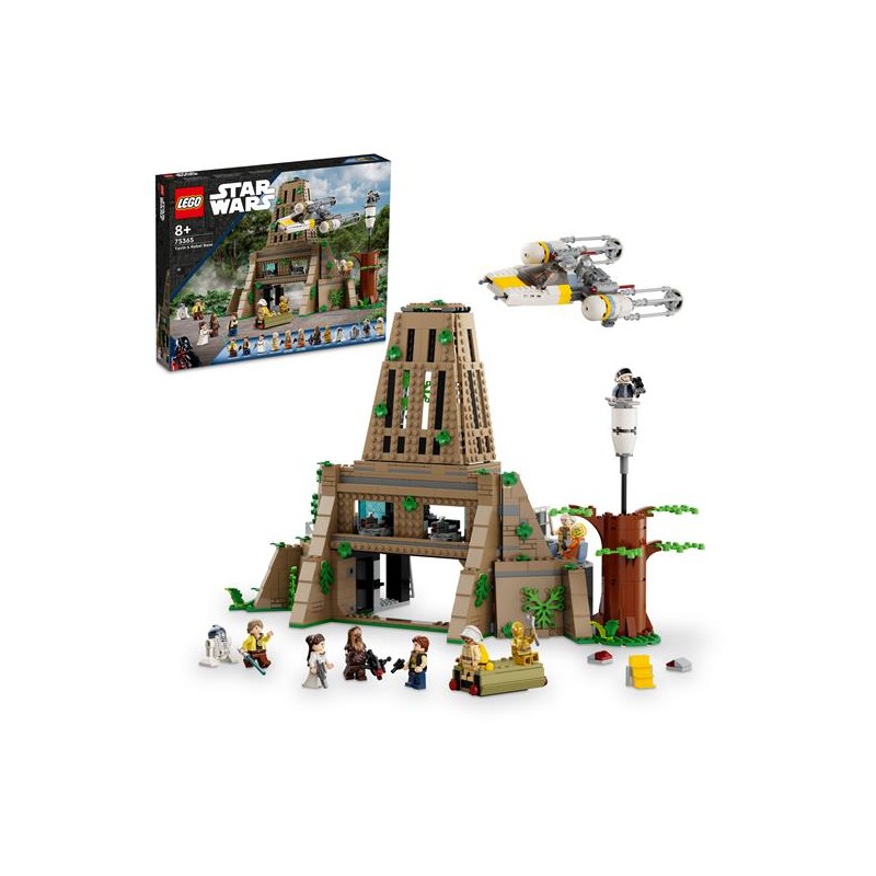 Rivivi i momenti memorabili di Star Wars Una nuova speranza con questa Base ribelle su Yavin 4 75365 in mattoncini LEGO per bambini dagli 8 anni in su E' dotata di una sala di comando dettagliata e di una sala del briefing dei piloti palco per la cerimonia delle medaglie 2 shooter rotanti un albero costruibile con torre di guardia sollevabile un Y wing con 2 shooter a molla più un carrello di servizio Dai vita a scene classiche con 12 personaggi LEGO Star Wars tra cui la minifigure LEGO di Garven Dreis Red Leader novità di agosto 2023 e un droide R2 BHD LEGO più armi e accessori esclusivi come le medaglie da presentare a Luke Skywalker e Han Solo