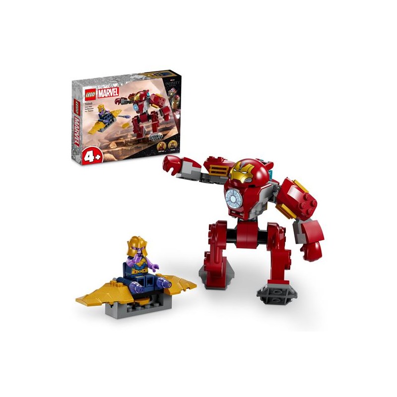 Basato su Avengers Infinity War dei Marvel Studios questo set di gioco riunisce il supereroe Iron Man e il suo mech insieme al supercattivo Thanos e al suo aereo Il mech Hulkbuster è completamente snodabile e include un sedile per la minifigure di Iron Man Il velivolo è dotato di lancia dischi e di sedile per la minifigure di Thanos All interno della scatola ogni sacchetto di mattoncini contiene un modello completo e un personaggio che i bambini possono assemblare per giocare subito Una colorata storia illustrata funge da guida per la costruzione e il gioco mentre 2 Starter Brick con le gambe del mech semplificano la costruzione Per tanto divertimento digitale in più i costruttori possono ingrandire ruotare i set in 3D e tenere traccia dei loro progressi utilizzando la divertente e intuitiva app LEGO Builder