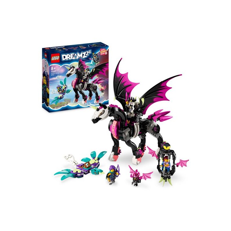 Lascia che i bambini di 8 anni volino nell azione del Mondo dei sogni con questo set giocattolo costruibile Pegaso il Cavallo Volante LEGO DREAMZzz 71457 Basato sullo show televisivo il set segue Zoey mentre salva la sua amica Nova che è stata catturata dalla creatura incubo Susan sul Cavallo Volante Pegaso Le istruzioni per la costruzione basate sulla storia consentono ai bambini di immergersi nell azione e scatenare la loro immaginazione decidendo il percorso di Zoey