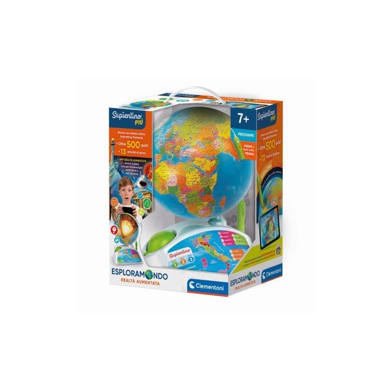 Un globo interattivo per andare alla scoperta delle bellezze del mondo e risolvere divertenti enigmi Per iniziare il viaggio della conoscenza il bambino dovrà puntare la penna a lettura ottica sul mappamondo per scoprire tutte le informazioni del luogo selezionato Più di 500 domande suddivise in tre livelli di difficoltà crescente per verificare le nozioni acquisite e sfidare amici e genitori Tante ore di informazioni e 13 funzioni di gioco per un divertimento senza fine Informazioni su Continenti Nazioni Capitali Superficie Popolazione Moneta Lingua Territorio Rilievi Fuso orario Curiosità Prodotti Tipici Inni nazionali Clima Storia e Governo Con l App Esploramondo il gioco continua Si potrà sperimentare la realtà aumentata inquadrando il mappamondo il globo prenderà vita App compatibile con Android e Apple Il globo attraverso la nuova app con la Realtà Aumentata prenderà vita Oltre a giocare con quiz interattivi sarà possibile visionare monumenti e animal