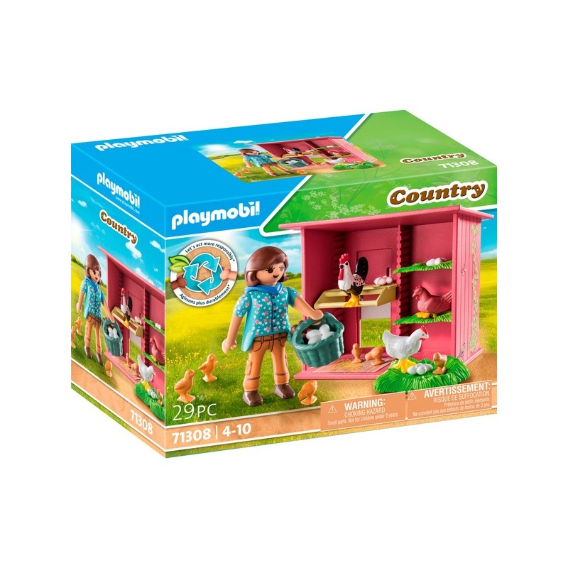 Naturalmente anche i polli hanno il loro posto nel mondo di PLAYMOBIL Country Incluso in questo set è un pollaio completo con belle decorazioni e una famiglia di polli con pulcini Le uova deposte devono essere raccolte ogni giorno questo è curato dalla figura con il cesto che è anche incluso
