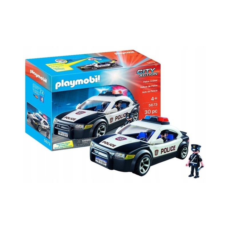 Questo classico veicolo della polizia bianco e nero è dotato di luci lampeggianti per un effetto maggiore