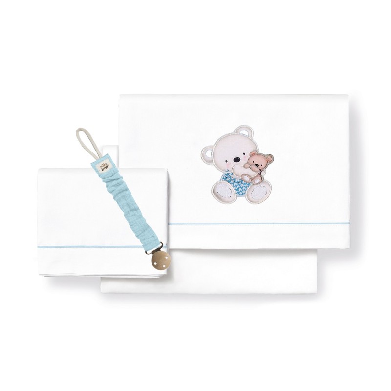 SET 3 PEZZI LETTINO 60X120 PORTA CIUCCIO COTONE MODELLO OSO COLUMPIO B