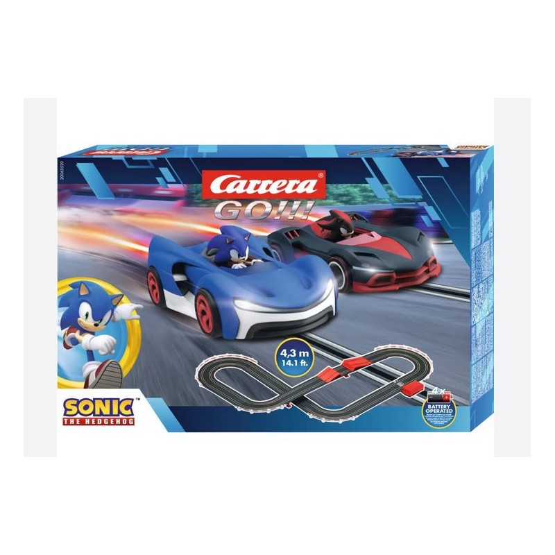 La Pista Sonic the Hedgehog Carrera Go 63520 è una fantastica pista da corsa a batteria che presenta i personaggi iconici del mondo dei videogiochi Sega Sonic e Shadow Questi due personaggi si sfidano nella loro Speed Star e Dark Reaper su una pista lunga 4 3 metri che offre molta azione e divertimento