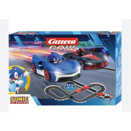 La Pista Sonic the Hedgehog Carrera Go 63520 è una fantastica pista da corsa a batteria che presenta i personaggi iconici del mondo dei videogiochi Sega Sonic e Shadow Questi due personaggi si sfi