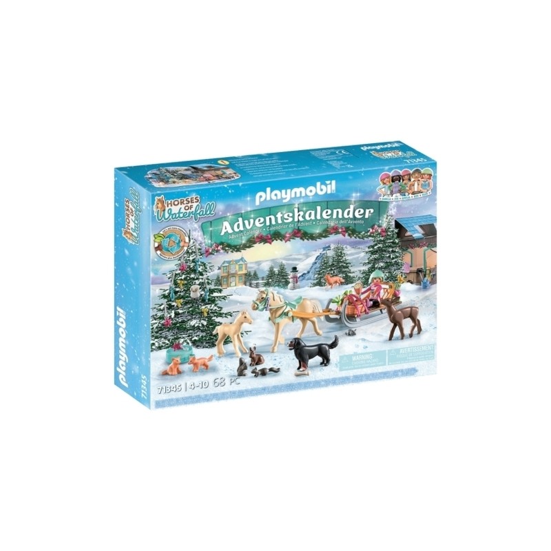 Natale al Waterfall Ranch Dietro ogni porta di questo calendario dell Avvento c è una sorpresa molto speciale dal mondo dei cavalli di PLAYMOBIL Horses of Waterfall Un giro in slitta invernale porta Isabella la bellissima cavalla andalusa Buttercup il suo dolce puledro Cream e il bovaro bernese Lucy nella vicina foresta di Lelawala Qui Isabella fornisce ai piccoli e grandi animali della foresta fieno verdure e altre prelibatezze prima della grande festa I biscotti di mele e farina d avena cotti secondo una ricetta dell istruttore di equitazione Muriel sono particolarmente apprezzati dai cavalli Quando hanno freddo Isabella mette la coperta del cavallo su di loro I ciondoli di Natale sull albero sono stati realizzati dalla sorellina di Zoe Con questo calendario dell Avvento progettato con cura un playset natalizio viene gradualmente creato attorno a una grande slitta trainata da cavalli in cui c è spazio per una figura e il cesto Le decorazioni dell albero possono essere conservate nella confezione regalo