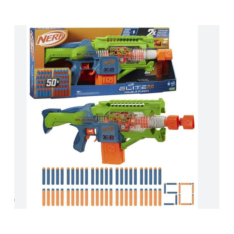 Il blaster Nerf Elite 2 0 Double Punch è un lancia dardi motorizzato che fa parte della linea Nerf Elite 2 0 Questo blaster è progettato per bambini dagli 8 anni in su e offre un esperienza di gioco